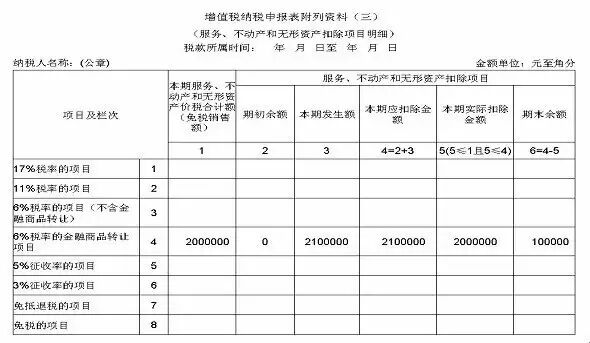 其中:服务、不动产和无形资产的销售额不填写到主表第3栏“应税劳务销售额”中,应填写到主表第1栏“按适用税率计税销售额”中。