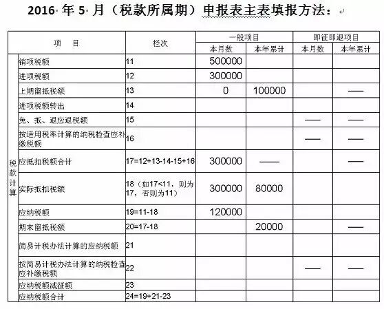 3.主表第19栏“应纳税额”“一般项目”列“本月数”=第11栏“销项税额”“一般项目”列“本月数”-第18栏“实际抵扣税额”“一般项目”列“本月数”-第18栏“实际抵扣税额”“一般项目”列“本年累计”。即:500000-300000-80000=120000