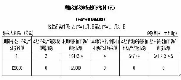 2017年11月(税款所属期),申报表《附列资料(五)》的填报方法: